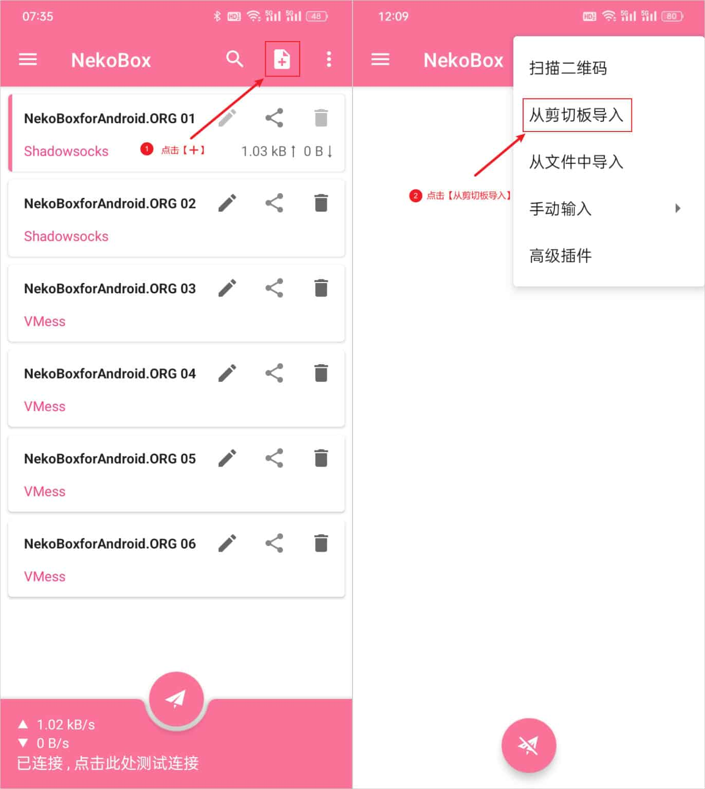 节点服务器即软件中的配置文件,在使用之前,首先需要添加一个 NekoBox for Android节点 即服务端才能使用代理上网功能,更多节点可参考本站Clash节点 | 获取Clash订阅节点。